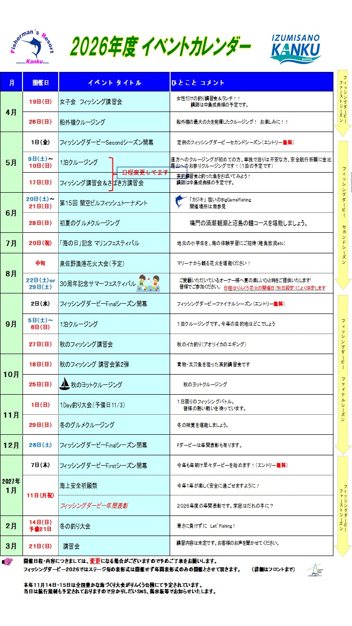 いずみさの関空マリーナのイベントなど